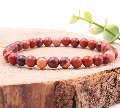 Ce bracelet en jaspe breschia (aussi appelé jaspe rouge veiné) séduit par son mélange intense de rouge profond, de beige sableux et de noir minéral. Il incarne la force tranquille et l'équilibre naturel, avec une élégance brute.