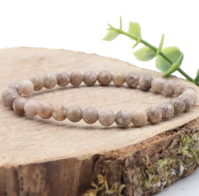 BRACELET AGATE FOSSILE - PERLES 06MM
