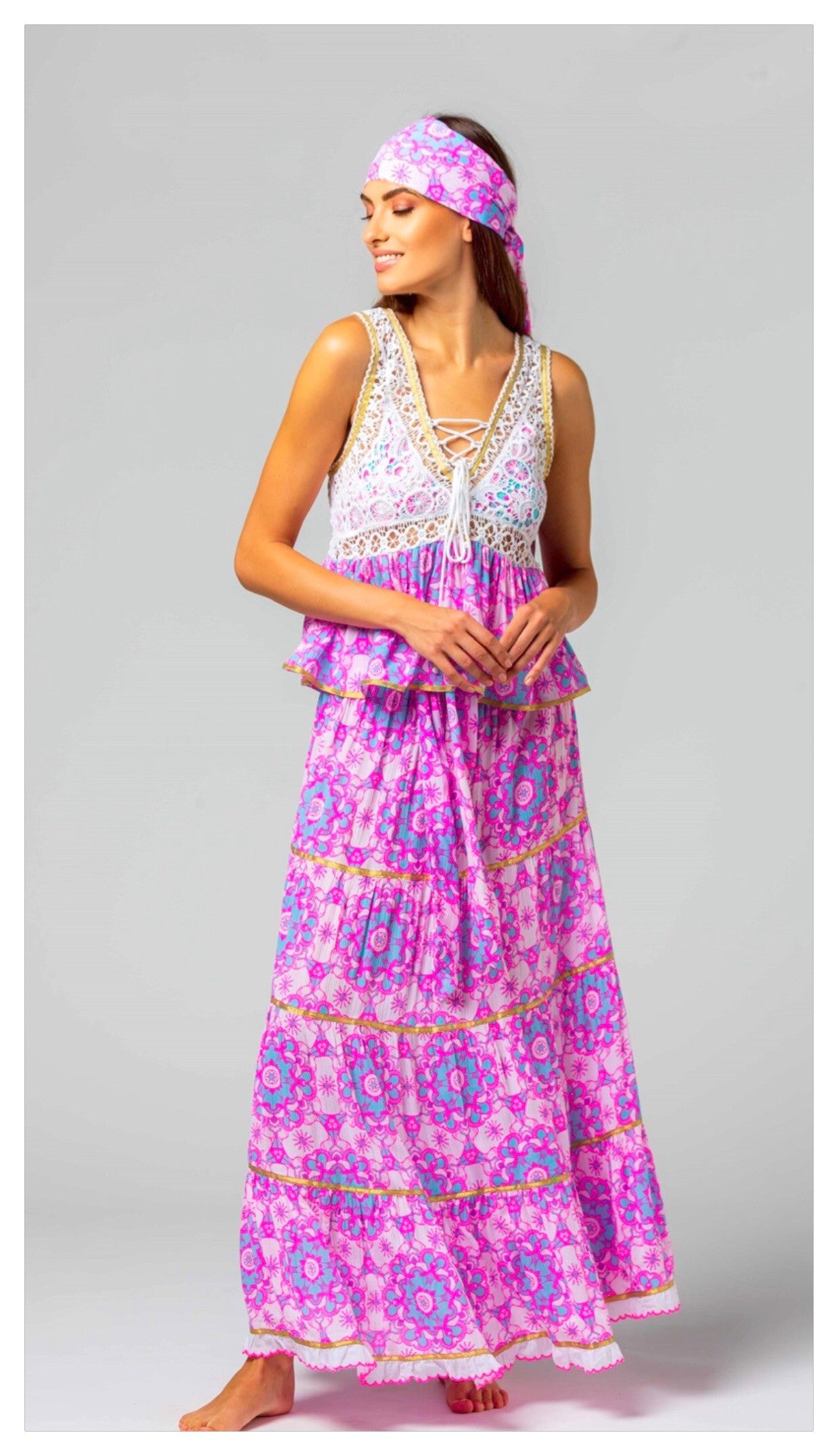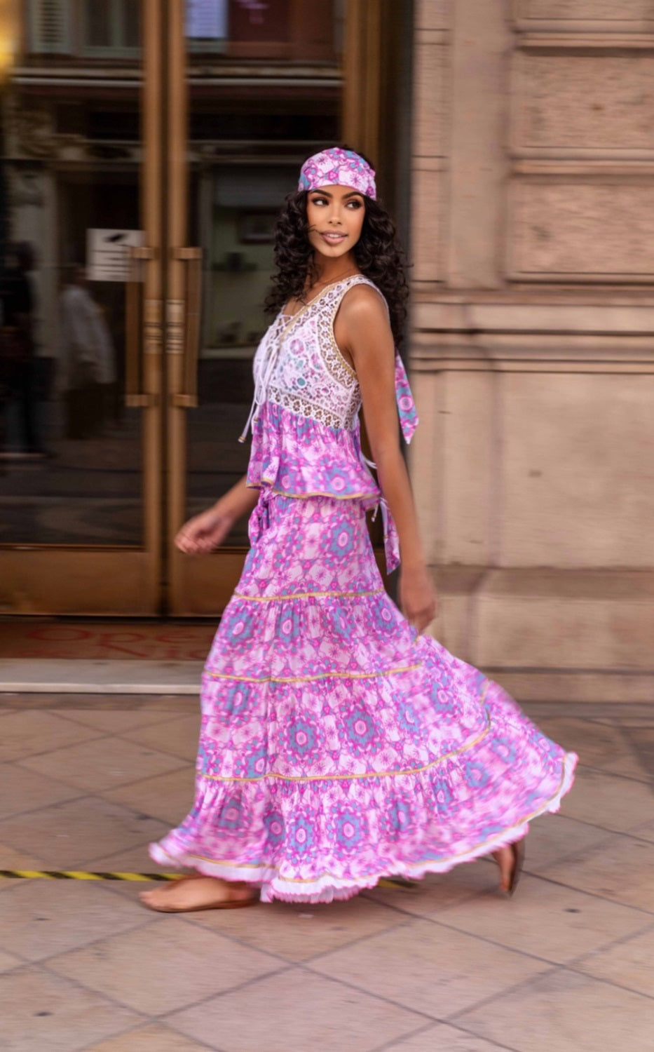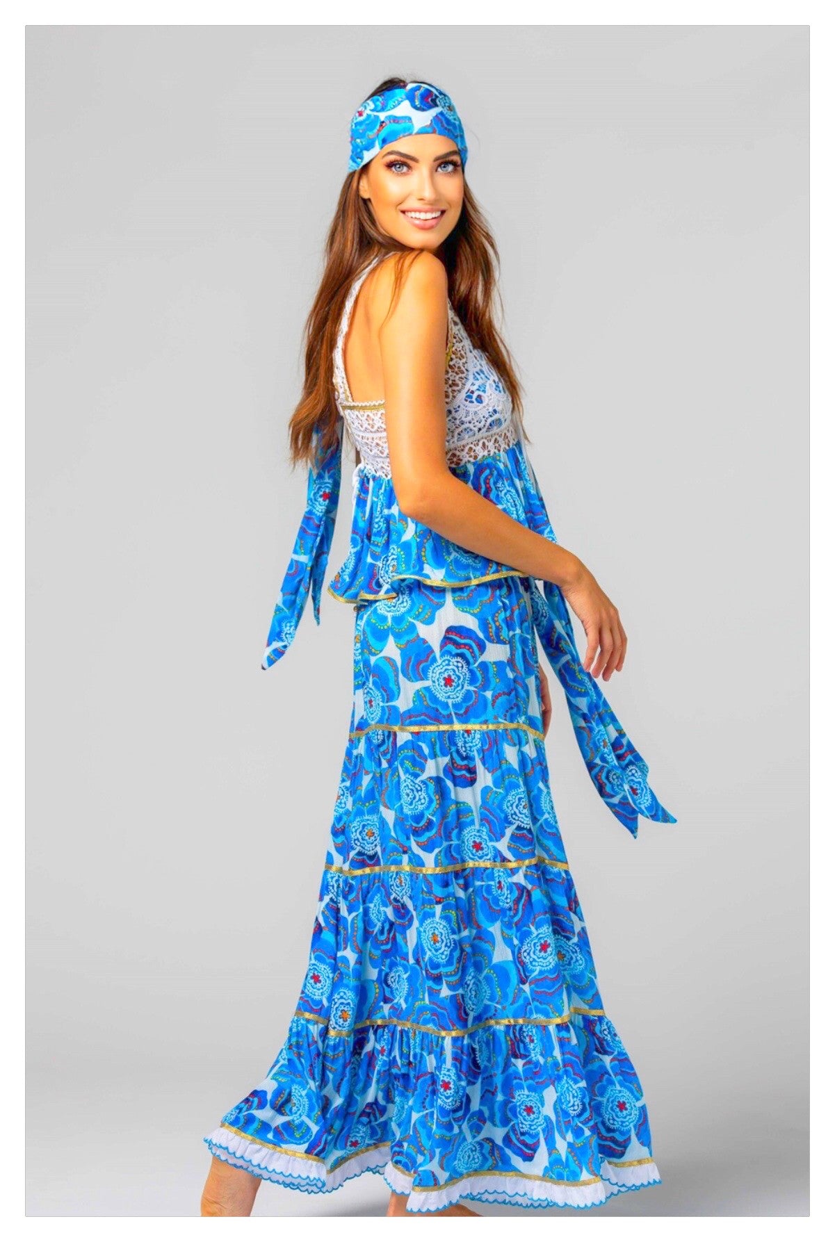 Élégance bohème garantie 🌸 ! Cette jupe longue à imprimé floral mandala 🌿 se porte parfaitement avec le top AMAYA pour un look harmonieux et lumineux ✨.