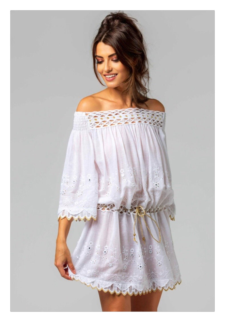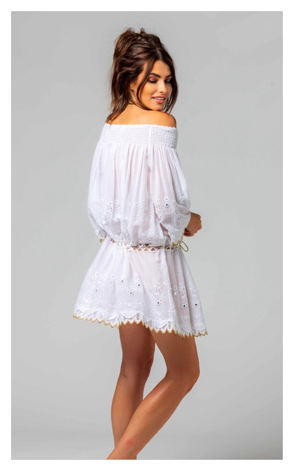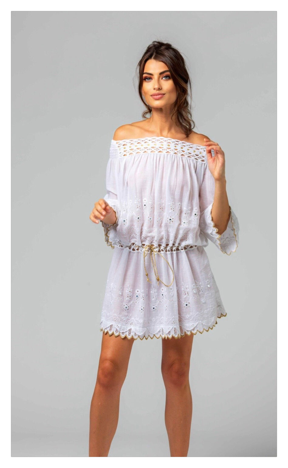 Plongez dans l’univers solaire d’Always the Sun avec cette tunique alliant confort absolu et raffinement ☀️💫. Confectionnée dans un doux mélange de coton, elle est sublimée par des broderies délicates, des miroirs scintillants et des passementeries raffinées, pour une allure lumineuse et bohème 🌼✨.