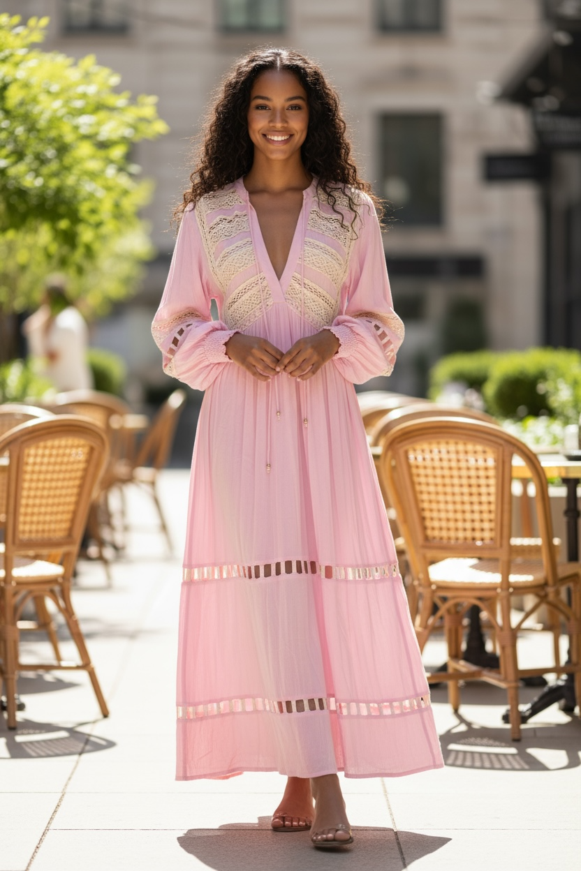 🌸 Détails raffinés : manches smockées & passementeries ajourées