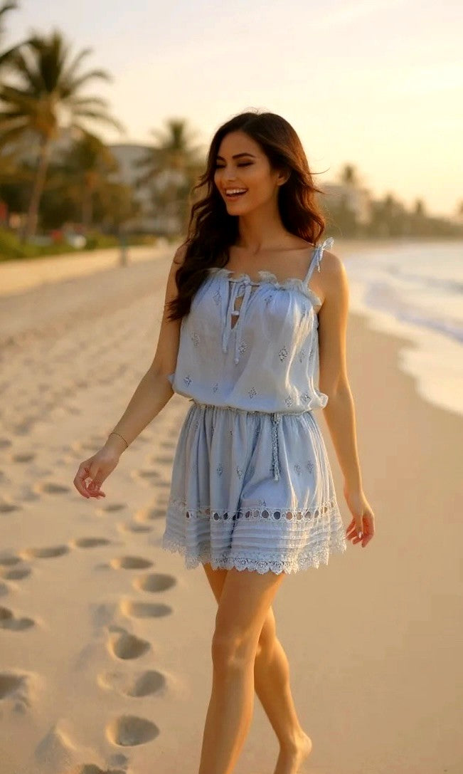 Indispensable du dressing estival, cette robe légère s’adapte à toutes les silhouettes grâce à son buste élastiqué et son lien ajustable sous la poitrine 🎀.