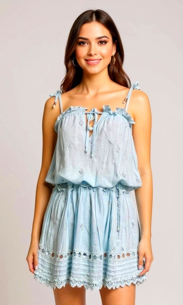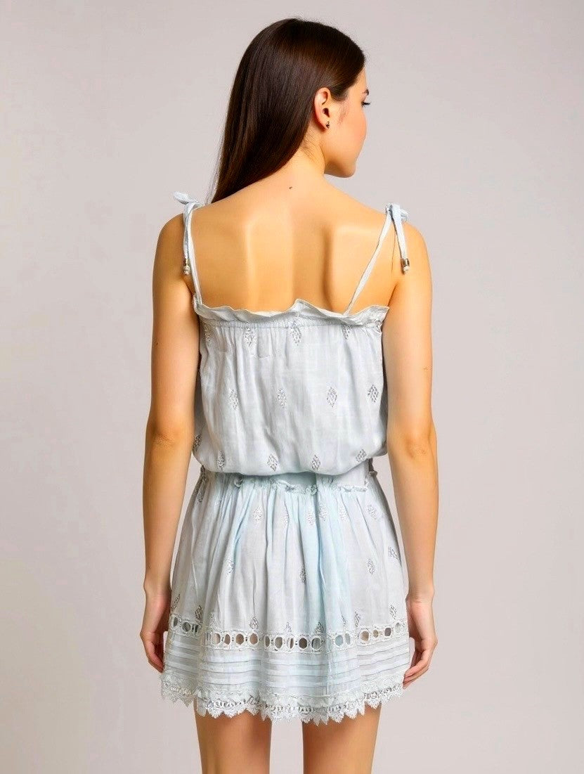 Ornée de broderies losange délicates et de passementeries raffinées, elle se porte avec ou sans ceinture pour un look décontracté ou plus habillé selon vos envies ✨.