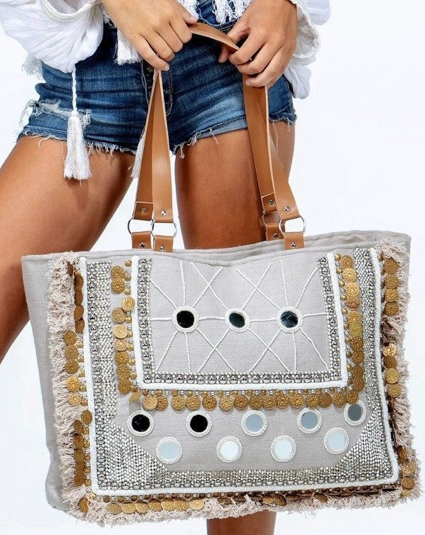 Orné de franges, pièces métalliques, perles, miroirs et broderies fines, ce sac est une véritable œuvre artisanale 💫. Chaque détail est pensé pour créer un rendu unique, glamour et sophistiqué ✨