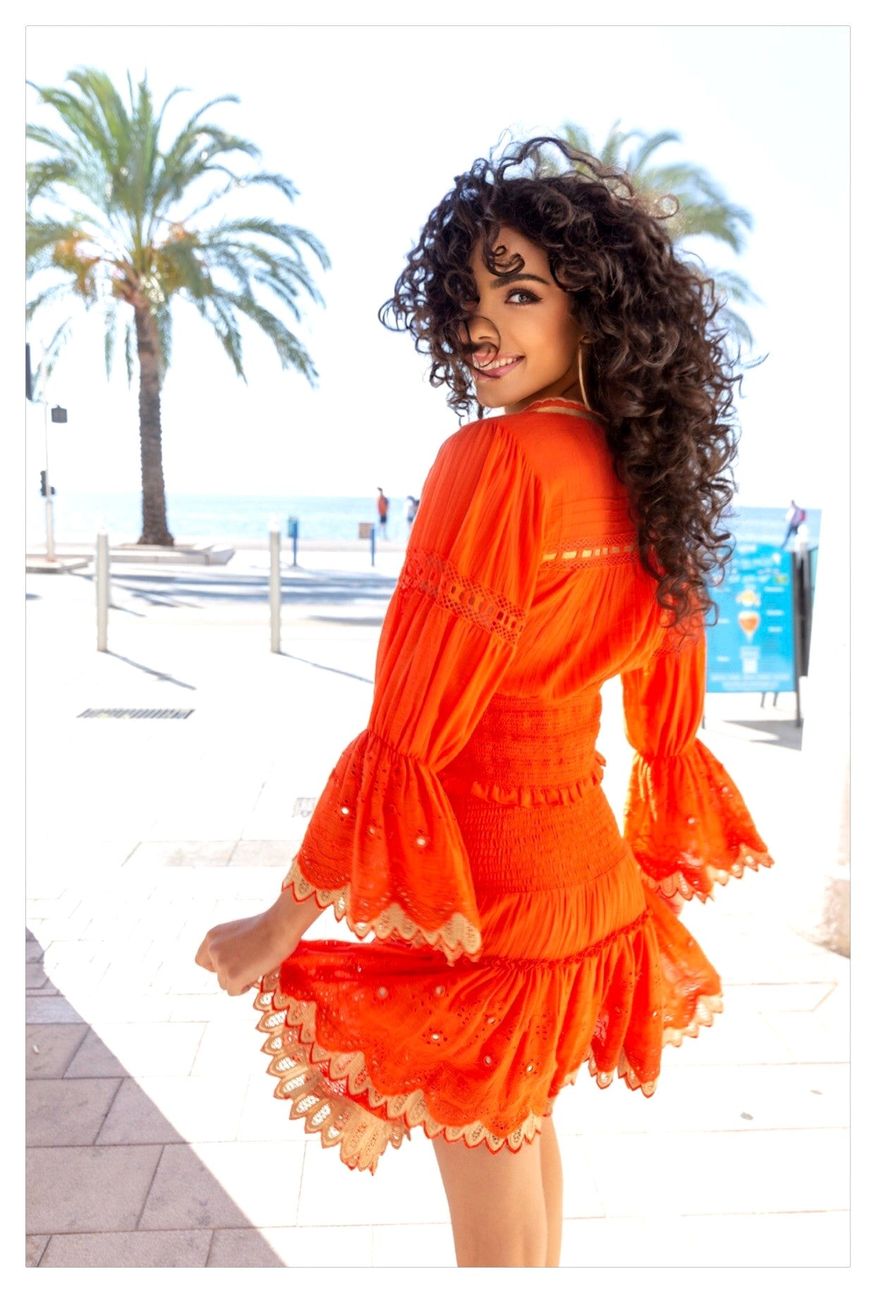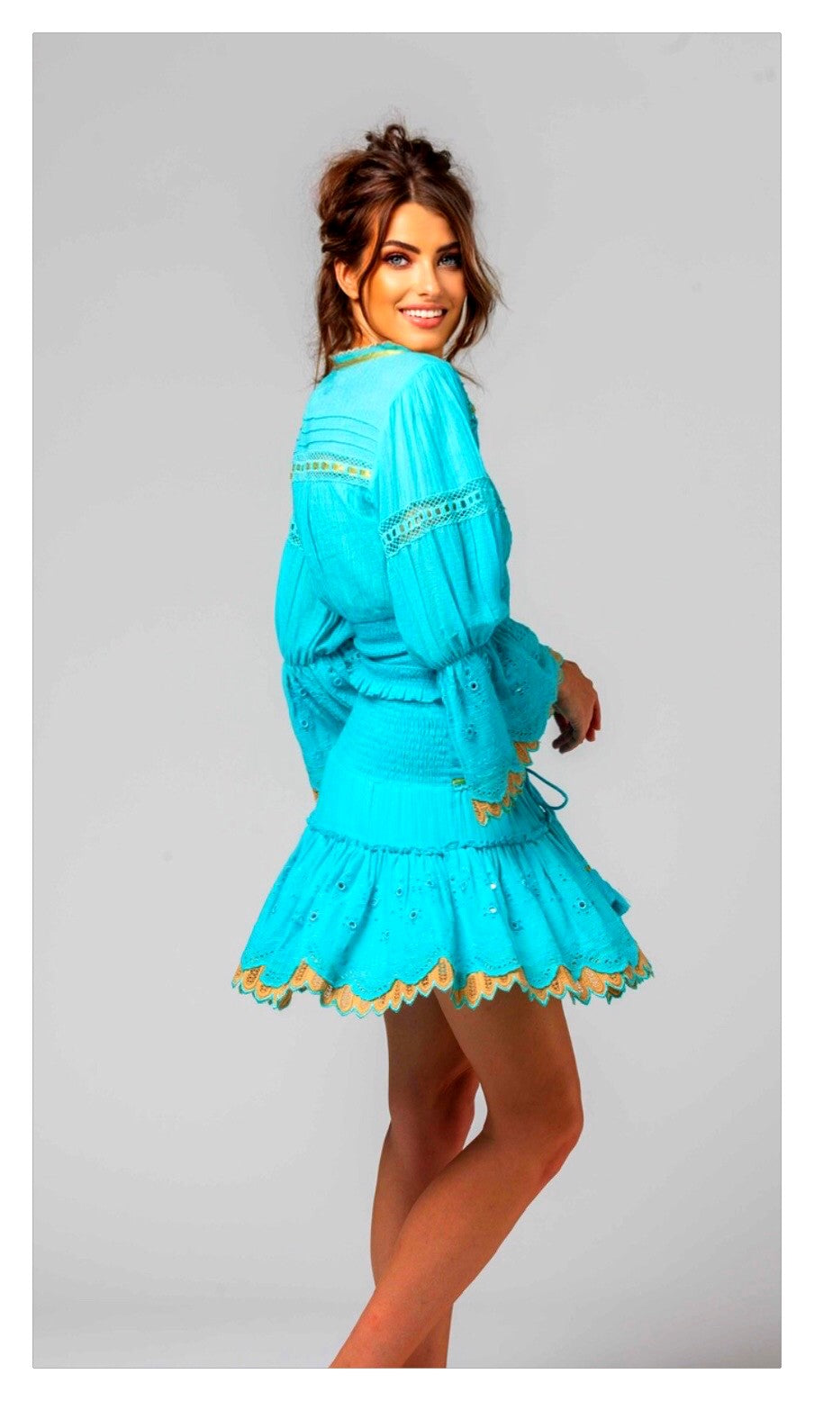 Ses manches ornées de passementerie 💫 apportent une touche artisanale raffinée, tandis que le buste et la taille smockés 🎀 soulignent joliment la silhouette pour un effet flatteur et confortable.