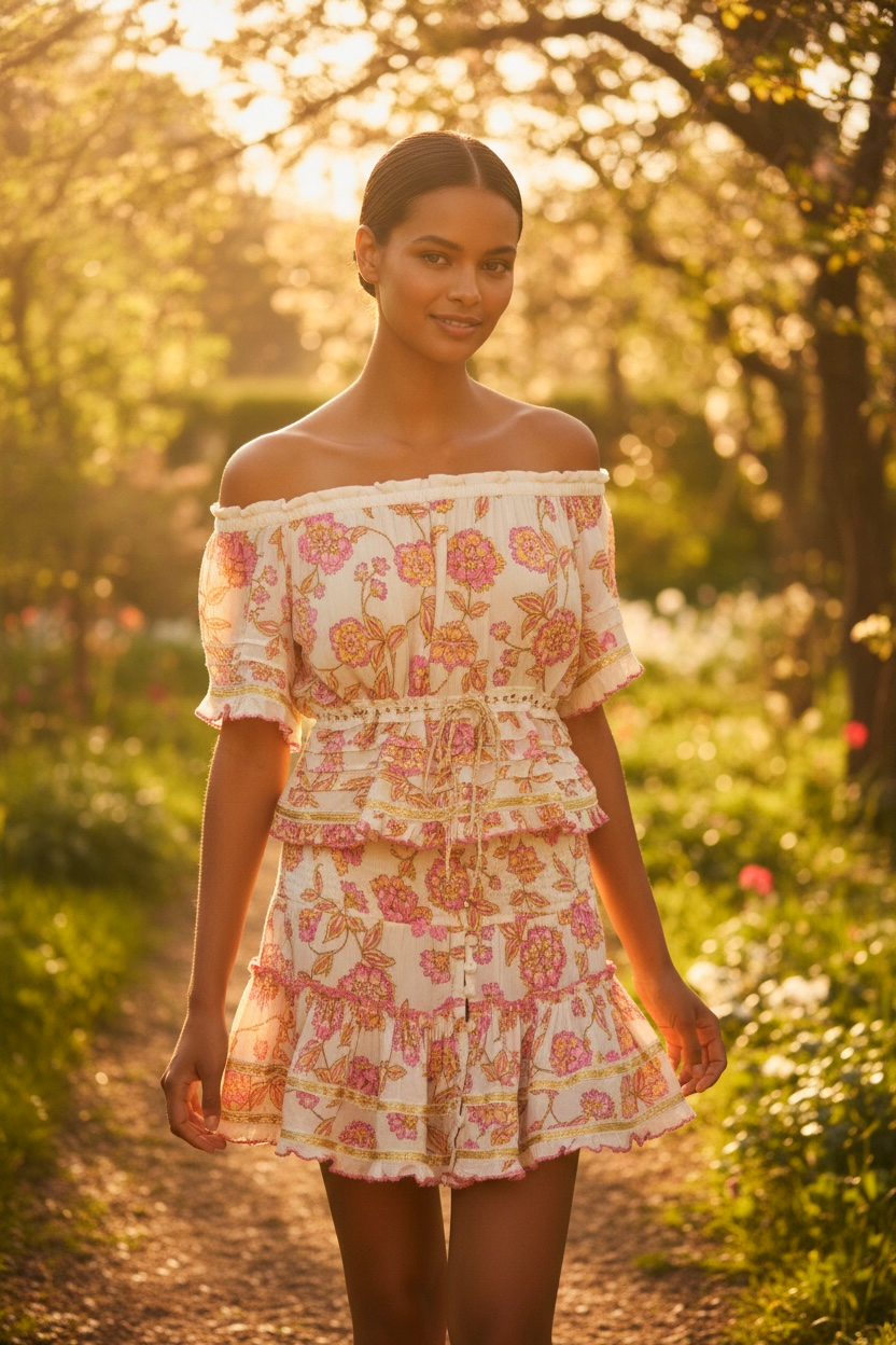 Alliant élégance et confort, ce top met votre silhouette en valeur avec légèreté et féminité 💕. Son lien coulissant sous la poitrine permet un ajustement parfait, tandis que la dentelle et le liseré doré aux manches ajoutent une touche raffinée et lumineuse ✨