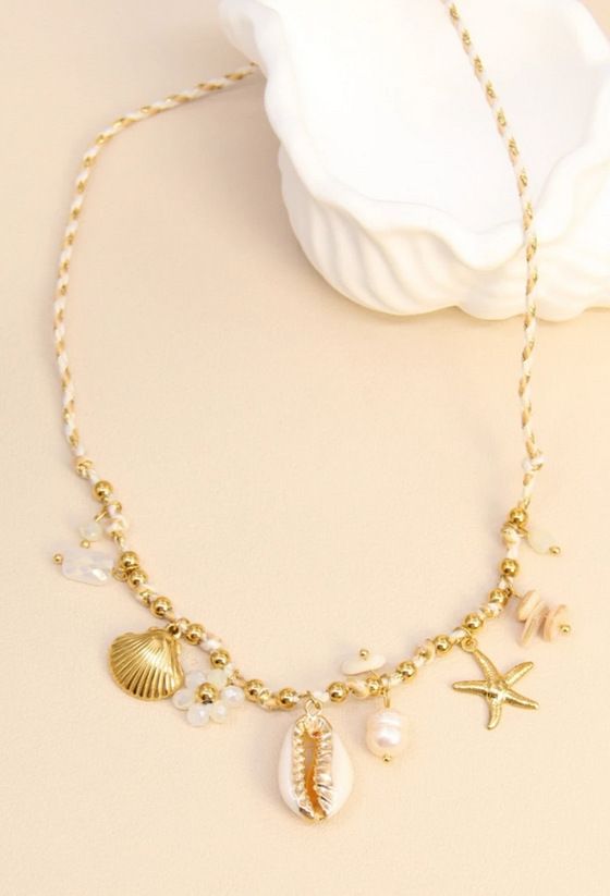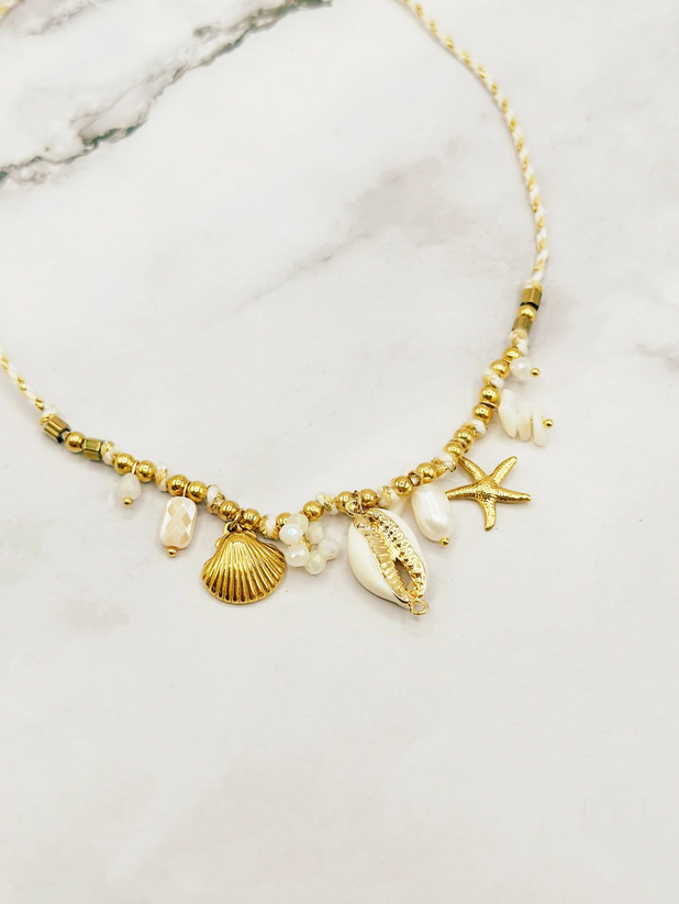 Embarque pour un voyage stylé avec ce collier raffiné qui combine pendentifs marins, perles dorées et coquillages naturels 🐠. Confectionné en acier inoxydable hypoallergénique, il résiste à l’eau 💧 et s’adapte à toutes les envies grâce à son cordon réglable. Une touche marine et ensoleillée pour sublimer ton look en toute légèreté 🌞🤍.